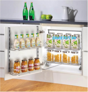 - PHỤ KIỆN TỦ TRÊN : Giá để gia vị nâng hạ, Giá để bát đĩa hai tầng, ba tầng, nâng hạ; Tủ kho cánh mở, cánh rút, Khay chia thìa đĩa,